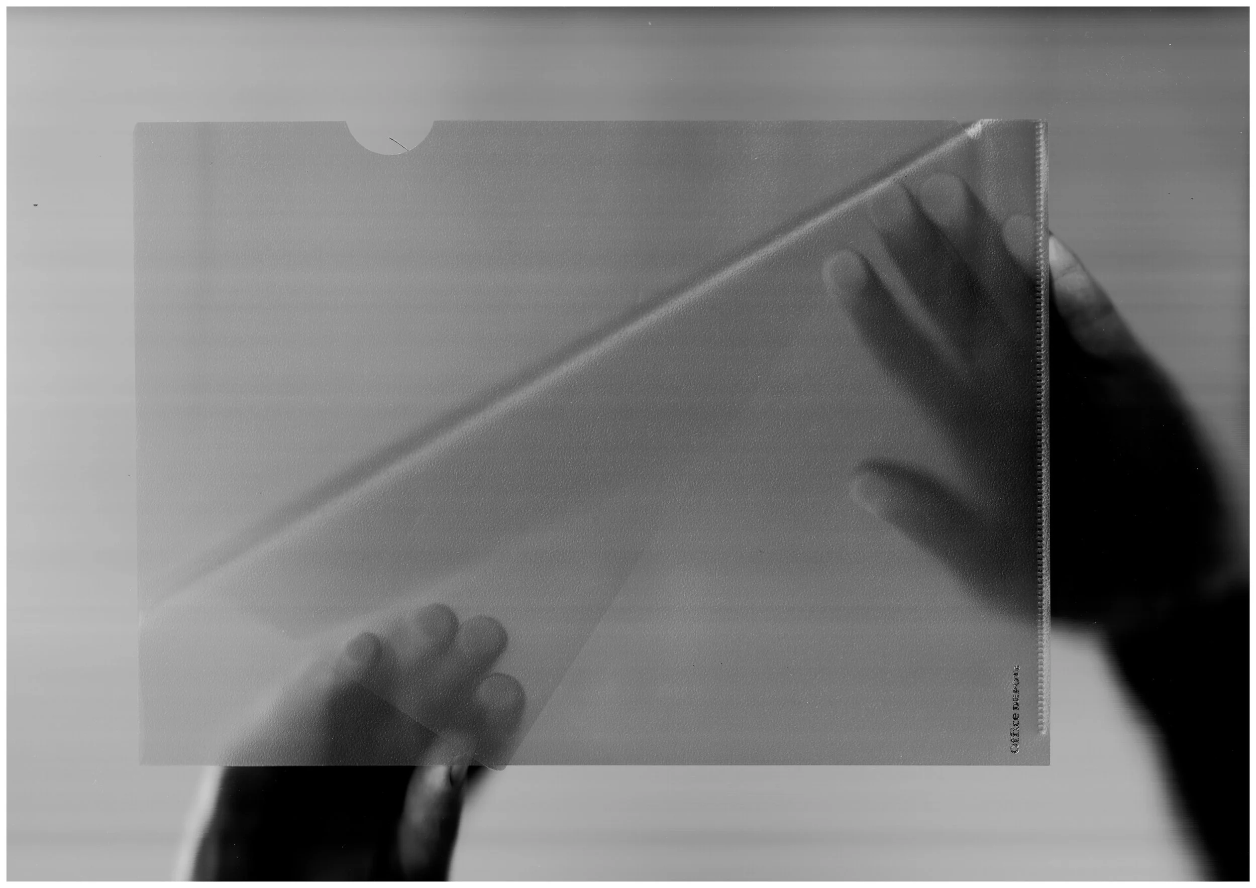 It’s within this condition that James Clarkson’s ‘Sleeper’ exists – it’s a record of many subtle insurgencies. Stolen moments of autonomy amid the oppressive uniformity of day-to-day labour. The photographs in ‘Sleeper’ feature a spectral figure caught mid-task, drained, burnt out. Ground down by the relentlessness of work. Lost in the drab labyrinth of the office, the figure has snatched a fleeting moment for themself, illuminated only by the mechanical sweep of the scanner’s sensor.'
